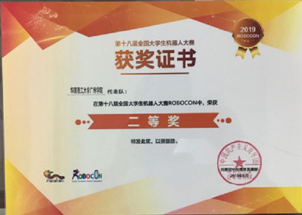 荣获Robocon全国二等奖证书(曾俊皓 摄)
