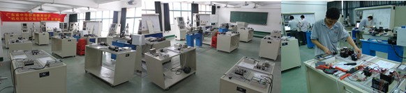 主要设备有:自动分拣与姿势调整工作站(可编程序控制系统设计师考核设备)、五工位柔性生产系统和空气压缩站等。主要向机电方向员工开展机电一体化技术的强化训练,包括:实训设备的机械、电气控制电路的装拆、变频器应用、PLC应用、气动控制、通讯等。主要授课对象是机电工程系机电方向员工。