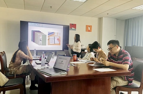 梁文思向参会教师展示了《设计色彩与构成》课程的多媒体课件,并阐述了该课程的教学方法与教学模式,包括混合式教学如何融入到课堂设计之中等内容,以其丰富的教学经验和精湛的教学技巧,为青年教师们展示了一堂生动而富有启发性的课程。参会教师纷纷表示受益匪浅,对课程设计有了更深刻的认识和理解,亦对参加青教赛更有信心。