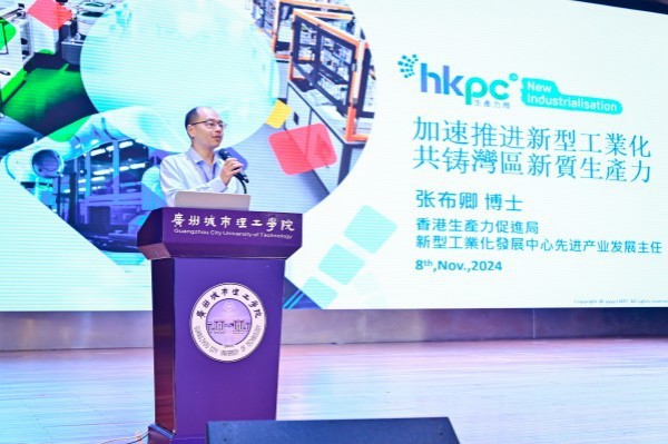 香港生产力促进局先进产业发展主任 张布卿作《加速推动新型工业化,共创湾区铸造新质生产力》主题报告(潘健怡 提供)