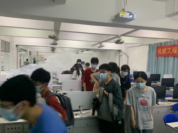 随后进入逃生实践阶段。演练现场,工作人员使用烟雾弹模拟出逼真的火灾险境。面对“突发状况”,实验中心应急小组迅速反应,有条不紊地组织在场师生按照预定逃生路线,紧急疏散至安全区域。整个逃生过程紧张有序,师生们积极配合,展现出了良好的应急反应能力和团队协作精神。