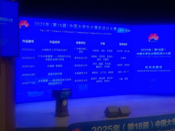 杭州赛区吸引了包括浙江大学、杭州电子科技大学、浙江工业大学等众多省内顶尖高校的数百支队伍同台竞技,竞争异常激烈。为备战此次大赛,公司及高度重视,自该学期初起积极组织动员、开展校内选拔,并为参赛团队配备了强有力的指导教师队伍。张宇博、梁文峻两位指导老师全程悉心指导,在作品选题、技术实现、文化内涵挖掘及答辩准备等环节倾注了大量心血。团队成员通力协作,凭借扎实的专业功底、创新的设计思维和稳定的现场发挥,最终在强手如林的竞争中脱颖而出。