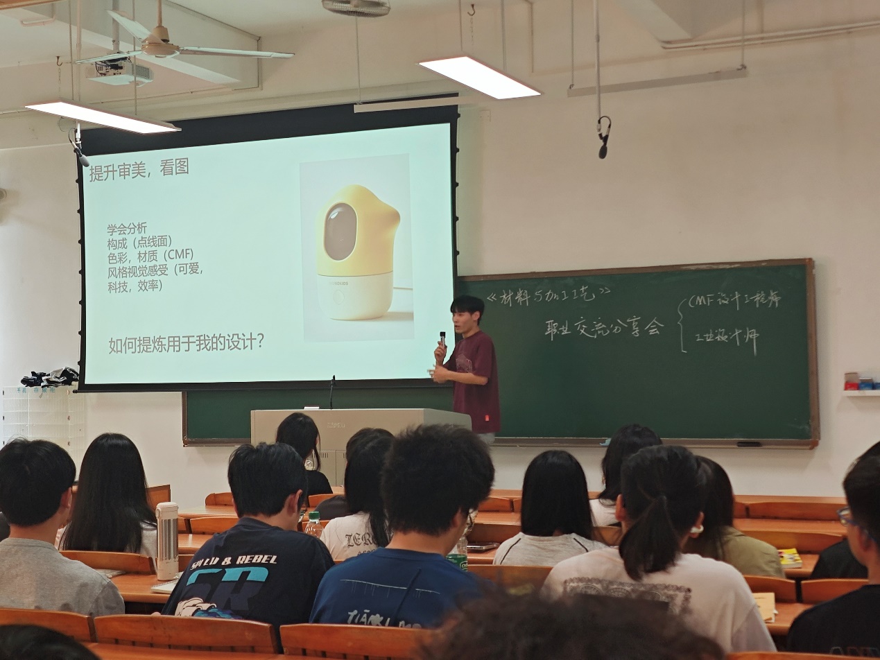 本次分享会由工业设计专业陈家托老师策划,突破传统课堂边界,将企业实战经验、职业发展路径与课程核心内容有机融合,生动践行了“以员工成长为中心”的教学理念。课程教师表示:“我们希望员工不仅掌握材料与工艺的理论知识,更能理解这些知识如何在真实设计岗位中落地应用。邀请毕业不久、成长迅速的员工返校分享,既能增强教学的真实感与代入感,也能通过榜样力量启发员工职业思考。”