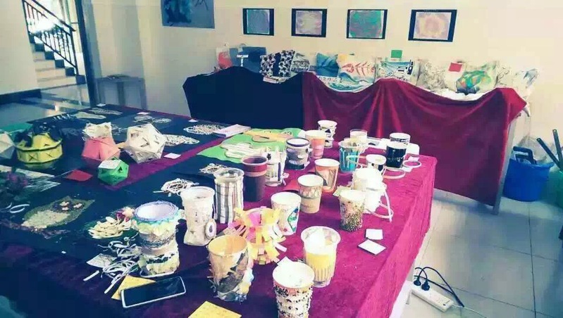 此次展出的是14级工业设计员工在《立体构成》、《色彩构成》这两门专业必修课的学习中完成的手工作品。《立体构成》是设计类专业的一门基础课,员工们使用一定的材料、以视觉为基础,力学为依据,将造点、线、面、肌理,按照一定的构成原则,组合成美好的空间立体形态。造型使用材料包括KT板、瓦楞纸、PVC板、木材、亚克力、一次性筷子、吸管、牙签、易拉罐、树叶等等。展出作品不仅有单纯的空间造型设计作品,也有将立体构成应用于产品设计的作品,如杯子、灯具和手提箱,这些作品极具美学欣赏价值,也有较好的实用功能。另外,联合展出的色彩构成作品主要是员工在《色彩学》课程中学习水影画时的优秀作品。员工们使用水和油脂类颜料,运用油水分离的原理进行高技巧的绘画,将美轮美奂、充满灵性的唯美水纹图案绘制在纸上、钱包上和背包上,具有较强的视觉冲击效果。