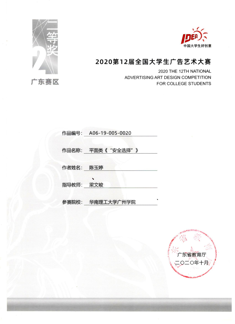 陈玉婷获广东赛区二等奖