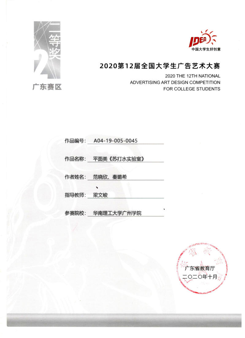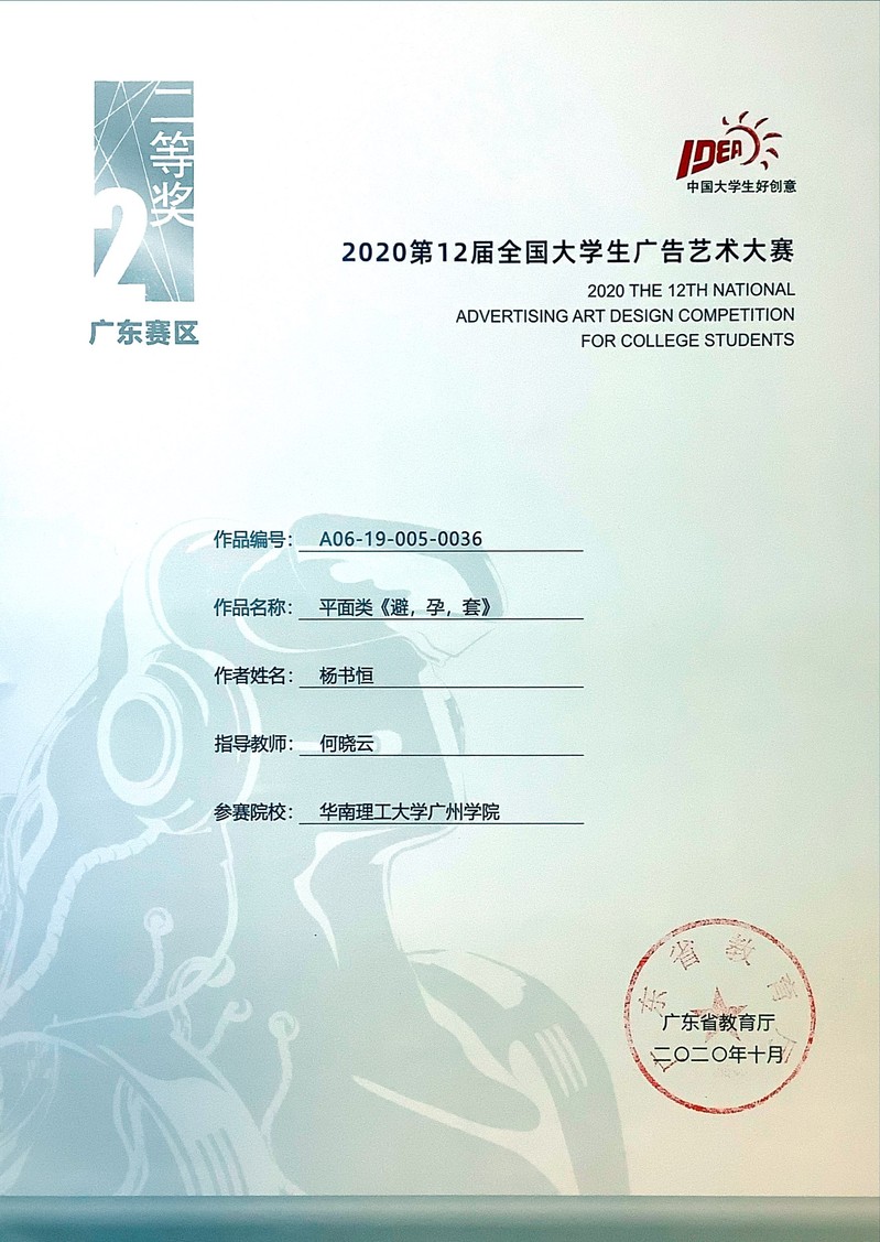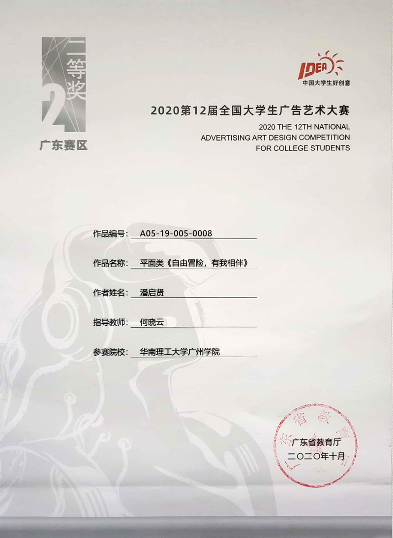 潘启贤获广东赛区二等奖