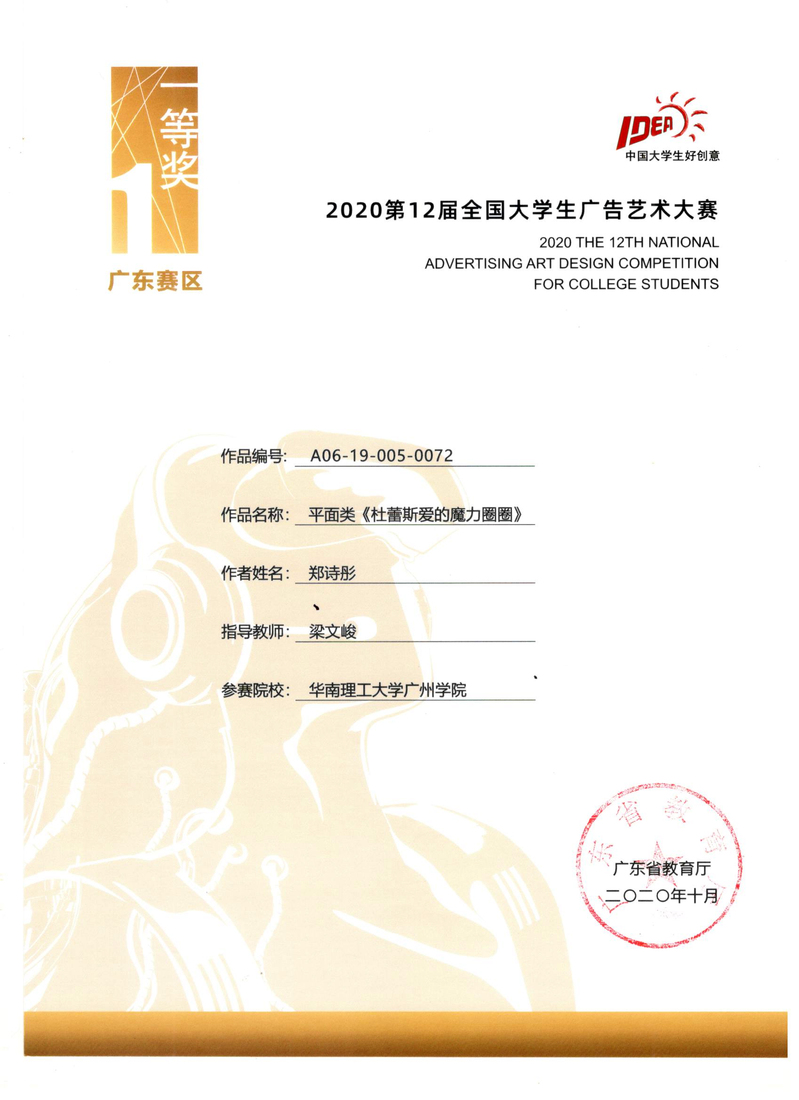 郑诗彤获广东赛区一等奖