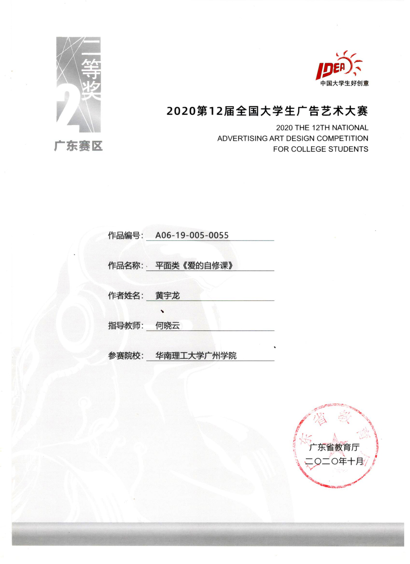黄宇龙获广东赛区二等奖