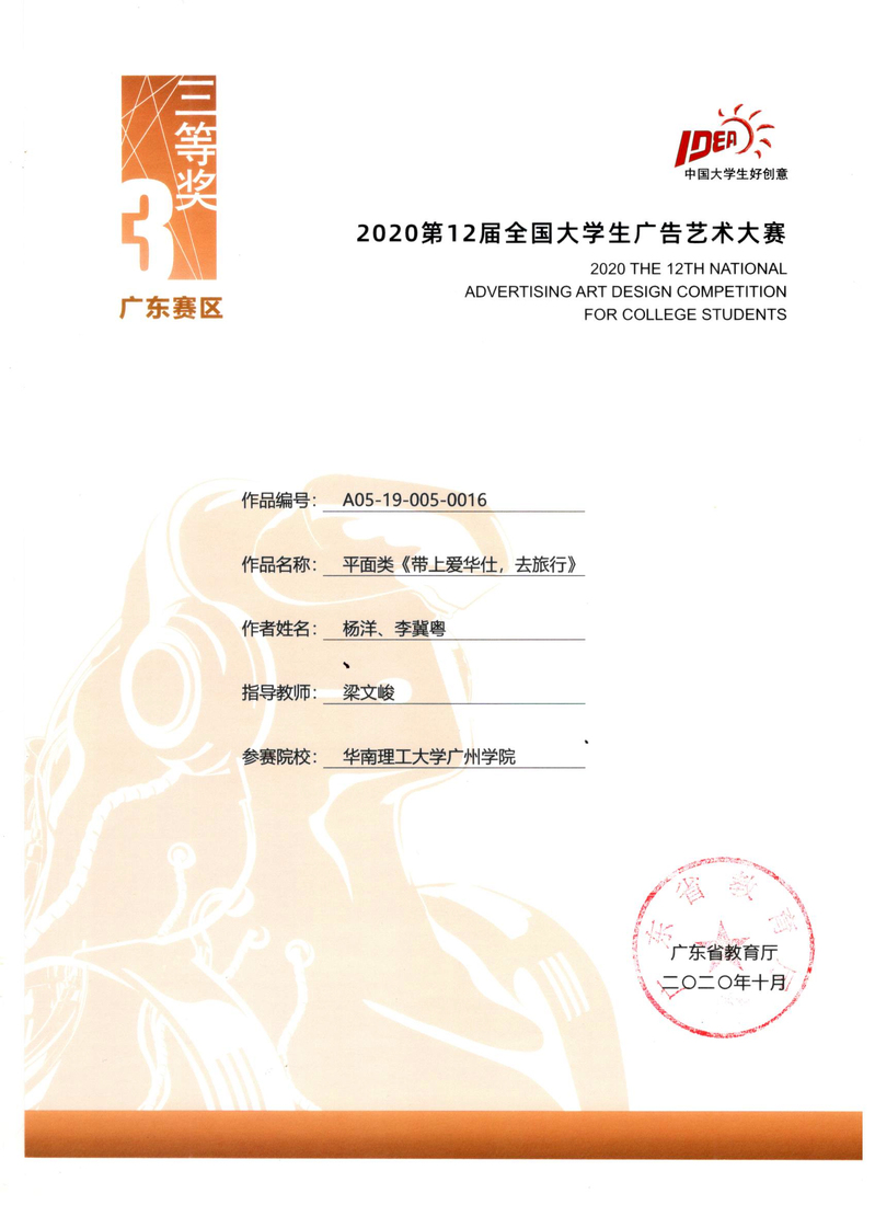 杨洋、李冀粤获广东赛区三等奖