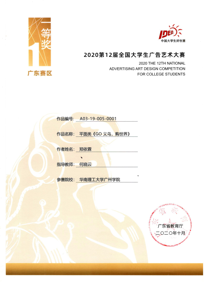 郑依霖获广东赛区一等奖