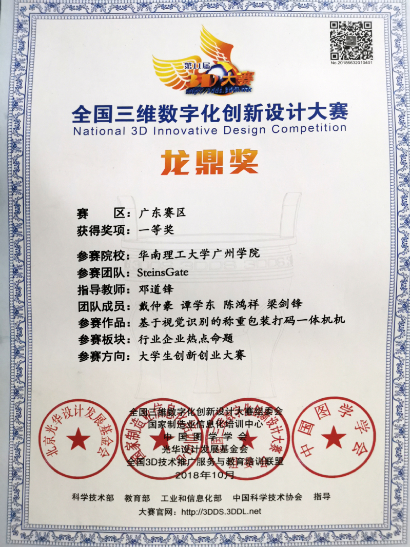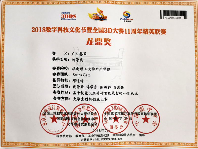 2018年全国三维数字化创新设计大赛龙鼎奖获奖