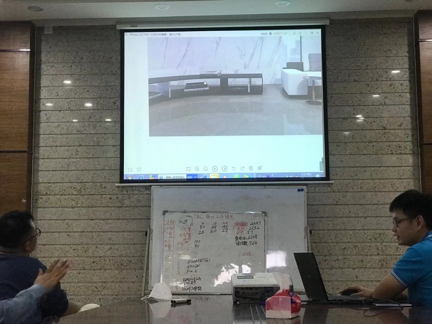 本网讯(记者谢濡璟)11月25日下午,公司工业设计协会赴广东江门鹤山市碧瑜企业有限公司研讨“大理石花纹“项目。