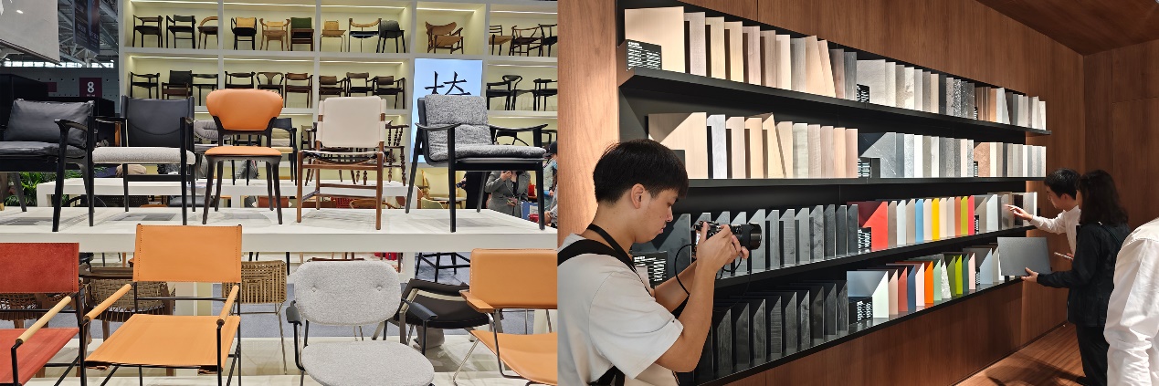 在这次活动中,工业设计与产品设计专业的师生们近距离感受了家具设计领域的前沿技术和创新成果。他们参观了各类展台,观摩了众多家具设计作品,听到了最新的设计研究理论。除此之外,同学们从设计前端的角度领略到了家具设计的多样性和创意的同时,亦从生产后端的角度深入了解家具与其拓展产品的CMF美学辅材研究与制造供应链。