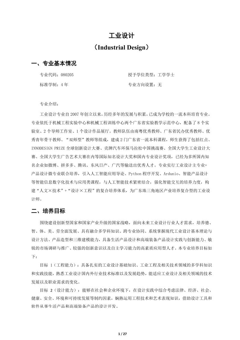2024级工业设计专业本科人才培养方案