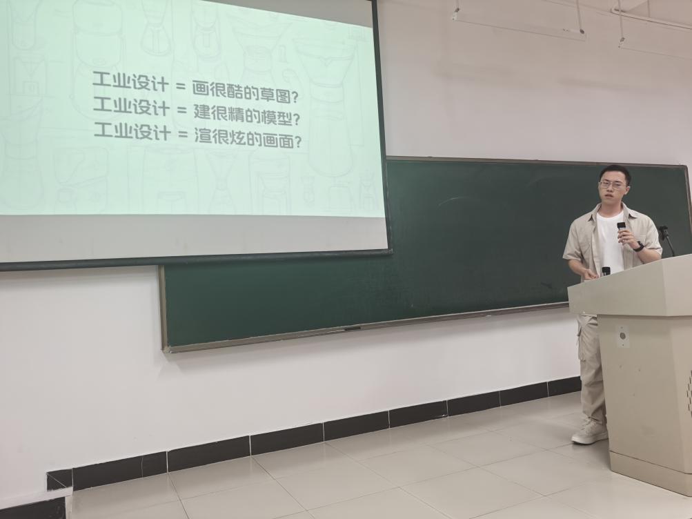 分享会上,林荣鑫同学以“不只是画图:设计一个很酷的产品,和更酷的自己”为主题进行了精彩分享。他系统阐述了工业设计的核心价值,指出其不仅是技能的学习,更是解决问题能力的综合培养。他结合自身从迷茫到确立专业方向的成长经历,建议学弟学妹们尽早进行自我认知,明确个人驱动力类型,从而制定个性化的学习与发展路径。